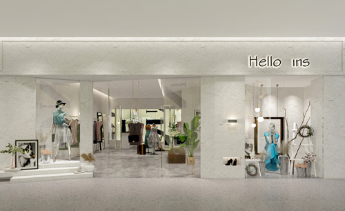 ins服裝展廳裝修設計 類別:企業(yè)展廳 面積:500-1000平米